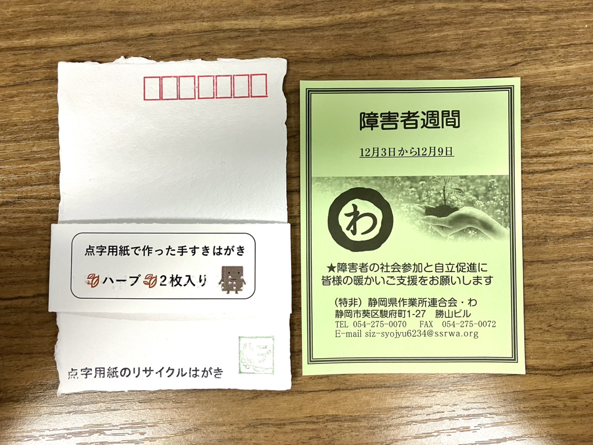 前回ご訪問させていただきましたNPO法人六星 ウイズ蜆塚さまから点字用紙で作った手すきはがきを送っていただきました!