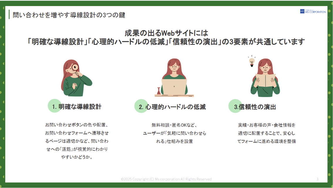 カンタン1分で入力完了 Webサイト制作のお役立ち資料をプレゼント! 最短1営業日以内に資料をメールにて送付致します。同業他社様からの資料請求はご遠慮ください。同業他社と判断した場合、誠に勝手ながら資料の送付をお断りさせていただきます。